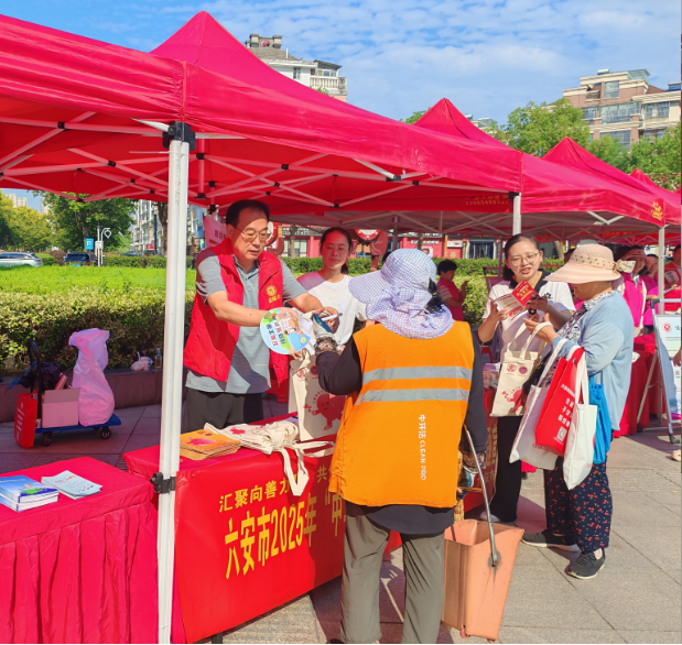| 2025年9月5日上午,正值第十个中华慈善日来临之际,市民政局、市慈善总会联合多家市直单位和慈善公益组织在河滨社区水云涧广场组织开展六安市2025年“中华慈善日”暨“安徽慈善宣传周”主题宣传活动。此次活动是积极落实民政部等七部门联合发文的通知要求,深入推动慈善文化“进机关、进企业、进乡村、进社区、进家庭”,将政策导向转化为基层实践,是慈善理念深入千家万户的具体行动。